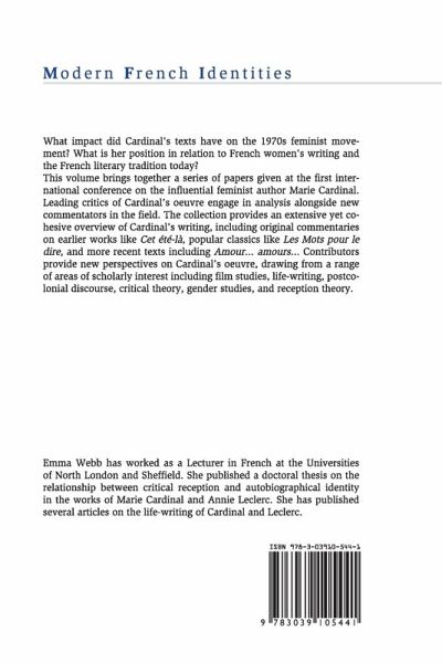This volume brings together a series of papers given at the first international conference on the influential feminist author Marie Cardinal. Leading critics of Cardinal's oeuvre engage in analysis alongside new commentators in the field. The collection provides an extensive yet cohesive overview of Cardinal's writing, including original commentaries on earlier works like Cet été-là, popular classics like Les Mots pour le dire, and more recent texts including Amour... amours... Contributors provide new perspectives on Cardinal's oeuvre, drawing from a range of areas of scholarly interest including film studies, life-writing, postcolonial discourse, critical theory, gender studies, and reception theory.