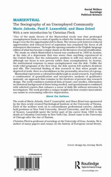 This study was conducted in 1930 in Austria during the depression, and examines the prolonged effects of unemployment on workers. It combines statistical data, case studies, historical background and reports to offer an insight into how creative innovations can assist in overcoming deprivation.