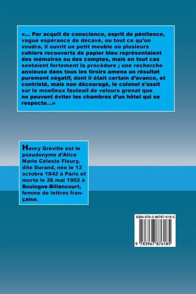 ... Par acquit de conscience, esprit de pénitence, vague espérance de décavé, ou tout ce qu'on voudra, il ouvrit un petit meuble où plusieurs cahiers recouverts de papier bleu représentaient des mémoires ou des comptes, mais en tout cas sentaient fortement la procédure ; une recherche anxieuse dans tous les tiroirs amena un résultat purement négatif, dont il était certain d'avance, et contristé, mais non découragé, le colonel s'assit sur le moelleux fauteuil de velours grenat que ne peuvent éviter les chambres d'un hôtel qui se respecte...
