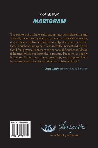 "Eye sockets of a whale, salmonberries, rocky shoreline and seawall, crows and goldeneye, moon and tides, barnacles, dogwinkle, and limpet, krill and kelp, deer, even a mink... there is such rich imagery in Vivian Faith Prescott's Marigram that I feel physically present at her coastal Southeast Alaska fishcamp while reading these poems. Prescott is deeply immersed in her natural surroundings, and I applaud both her commitment to place and her exquisite writing." -Anne Coray, author of Late Fall Bucolics