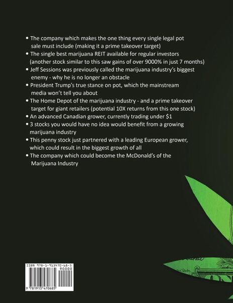 How to make big profits in the new wave of legal marijuana investing It's no secret that legal marijuana stocks are the hottest investment trend of 2019... However, with a hot market, comes overvaluation and bad decisions. You see, many people are hungry to get a foothold in the emerging recreational cannabis market. But they're not sure what to look for. So investors end up piling into some of the worst deals since the dot-com boom. Here's the deal The competition in the recreational pot industry will be as fierce as it is in the airline industry. There will be a cutthroat race to the bottom on prices - and it will bankrupt 90% of the current companies in the marijuana space. That's not to say all cannabis companies aren't worth investing in... But you need to invest in the right ones. Here's the best advice we can give you today. Don't just focus on companies involved in the growing and harvesting of cannabis flowers. Instead, there is a far more lucrative section of the market where the real gains will be made... Here's just a fraction of what you'll learn inside this collection: The highest upside cannabis stock of all (it's not Canopy Growth Corp - in fact, this little known company trades for less than $3) The company which makes the one thing every single legal pot sale must include (making it a prime takeover target) The single best marijuana REIT available for regular investors (another stock similar to this saw gains of over 9000% in just 7 months) Jeff Sessions was previously called the marijuana industry's biggest enemy - why he is no longer an obstacle President Trump's true stance on pot, which the mainstream media won't tell you about The Home Depot of the marijuana industry - and a prime takeover target for giant retailers (potential 10X returns from this one stock) An advanced Canadian grower, currently trading under $1 3 non-cannabis stocks you would have no idea would benefit from a growing marijuana industry This penny stock just partnered with a leading European grower, which could result in the biggest growth of all The company which could become the McDonald's of the Marijuana Industry This tobacco company is best poised to benefit from marijuana's popularity ...and much, much more All written in plain English, without complicated financial language. CNBC reported that the legal cannabis industry is set to grow by 5X in the next decade. Which puts it at around $300 billion or the same size as the beer industry. You won't see those kinds of gains in tech stocks, or pharmaceutical companies. For investors who get in early, these will be a once-in-a-generation chance at lifechanging gains. For those who sat on the sideline, it'll be just another "if only I'd invested then..." moment So if you want to profit from the biggest investment opportunity of the past 10 years...then scroll up and click "add to cart"