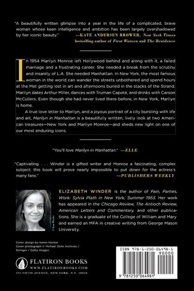 A city, a movie star, and one magical year. In November of 1954 a young woman dressed plainly in a white oxford, dark sunglasses and a black pageboy wig boards a midnight flight from Los Angeles to New York. As the plane's engines rev she breathes a sigh of relief, lights a cigarette and slips off her wig revealing a tangle of fluffy blonde curls. Marilyn Monroe was leaving Hollywood behind, and along with it a failed marriage and a frustrating career. She needed a break from the scrutiny and insanity of LA. She needed Manhattan. In Manhattan, the most famous woman in the world can wander the streets unbothered, spend hours at the Met getting lost in art, and afternoons buried in the stacks of the Strand. Marilyn begins to live a life of the mind in New York; she dates Arthur Miller, dances with Truman Capote and drinks with Carson McCullers. Even though she had never lived there before, in New York, Marilyn is home. In Elizabeth Winder's Marilyn in Manhattan, the iconic blonde bombshell is not only happy, but successful. She breaks her contract with Fox Studios to form her own production company, a groundbreaking move that makes her the highest paid actress in history and revolutionizes the entertainment industry. A true love letter to Marilyn, and a joyous portrait of a city bursting with life and art, Marilyn in Manhattan is a beautifully written, lively look at two American treasures: New York and Marilyn Monroe, and sheds new light on one of our most enduring icons.