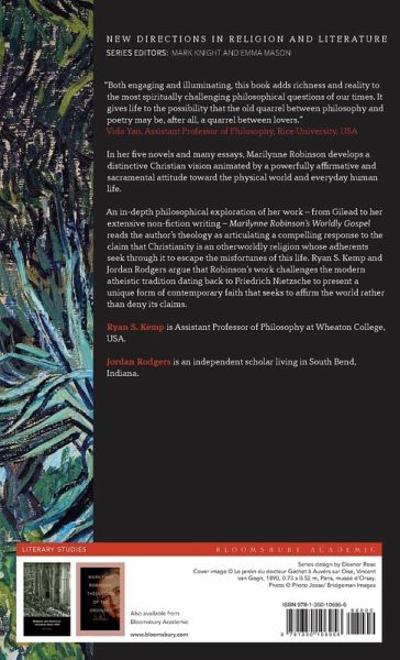 In her five novels and many essays, Marilynne Robinson develops a distinctive Christian vision animated by a powerfully affirmative and sacramental attitude toward the physical world and everyday human life. An in-depth philosophical exploration of her work - from Gilead to her extensive non-fiction writing - Marilynne Robinson's Worldly Gospel reads the author's theology as articulating a compelling response to the claim that Christianity is an otherworldly religion whose adherents seek through it to escape the misfortunes of this life. Ryan Kemp and Jordan Rodgers argue that Robinson's work challenges the modern atheistic tradition dating back to Friedrich Nietzsche to present a unique form of contemporary faith that seeks to affirm the world rather than deny its claims.