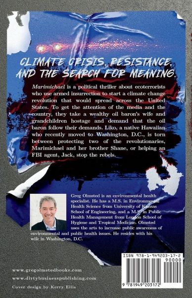 Marimichael is a political thriller about ecoterrorists who use armed insurrection to start a climate change revolution that would spread across the United States. To get the attention of the media and the country, they take a wealthy oil baron's wife and grandchildren hostage and demand that the oil baron follow their demands. Liko, a native Hawaiian who recently moved to Washington, D.C., is torn between protecting two of the revolutionaries, Marimichael and her brother Sean, or helping an FBI agent, Jack, stop the rebels.