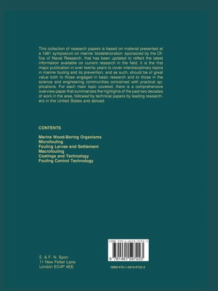 Marine Wood-Boring Organisms.- An Overview of Research on Marine Borers: Past Progress and Future direction.- The Microbial Ecology of Crustacean Wood Borers.- Nutrition in the Teredinidae.- Biochemical Aspects of Molluscan Shell Mineralization.- Maintenance of Waterfront Structures.- Recent Research and Future Trends for Protecting Wood in the Marine Waters.- Microfouling.- The Microbial Ecology of Marine Surfaces.- Initial Events in Microbial Film Formation.- Succession in Microfouling.- Determination of the Biomass, Physiological Status, Community Structure, and Extracellular Plaque of the Microfouling Film.- Microbial Films and Energy Losses.- Microfouling and Corrosion.- The Influence of Microbial Fouling Films on Hydrodynamic Drag of Rotating Discs.- Control of Microfouling in Ship Piping and Heat Exchanger Systems.- Fouling Larvae and Settlement.- Overview of Research on Marine Invertebrate Larvae, 1940-1980.- Methods of Dispersal Among Fouling Organisms and Possible Consequences for Range Extension and Geographical Variation.- Biochemical Control of Larval Recruitment and Marine Fouling.- Ascidian Larvae: Structure and Settlement.- Environmental Factors in Bryozoan Settlement.- Seasonal Changes and Fouling Community Interactions.- Macrofouling.- A Brief Overview of the Effects of Macrofouling.- The Attachment of Microfouling Diatoms.- The Attachment of Fouling Macroalgae.- The Attachment of Macrofouling Invertebrates.- The Structure and Stability of Marine Macrofouling Communities.- Replicate Fouling Panels and Their Variability.- Fouling and Paint Behavior on Naval Surface Ships after Multiple Underwater Cleaning Cycles.- Coatings and Technology.- Coating Selection for Optimum Ship Performance.- Erosion and Hydrodynamics of Biofouling Coatings.- FluoropolymerCoatings for the Marine Environment.- The Chemical and Physical Characterization of Marine Coatings Containing Organotin Antifoulants.- Electrochemical Control of Fouling.- Toxicity Testing of Candidate Antifouling Agents and Accelerated Antifouling Paint Testing.- Fouling Control Technology.- Technology for Control of Marine Biofouling-A Review.- Appendix A: Performance of Selected U.S. Navy Antifouling (AF) Coatings.