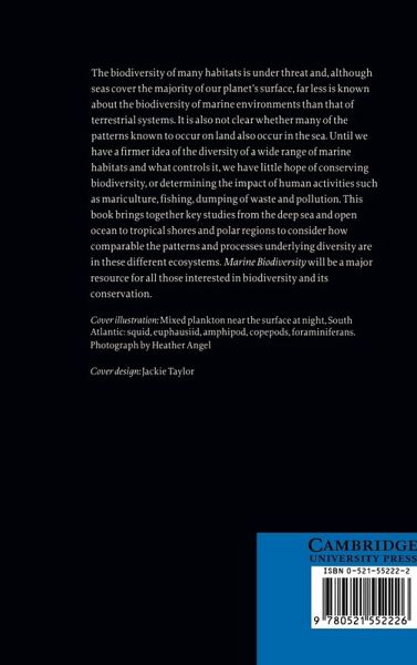 Although seas cover most of our world, the diversity of many of the varied habitats within them is as yet poorly understood. Here, experts on deep sea, open ocean and coastal shelf investigate the patterns and processes of marine biodiversity, to provide an important resource for all those interested in marine conservation and ecology.