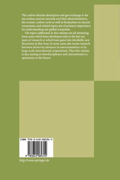 The carbon dioxide absorption and gas exchange at the sea surface, marine aerosols and their photochemistry, the oceanic carbon cycle as well as biomarkers in marine ecosystems, and related topics are of primary importance for understanding our global ecosystem.