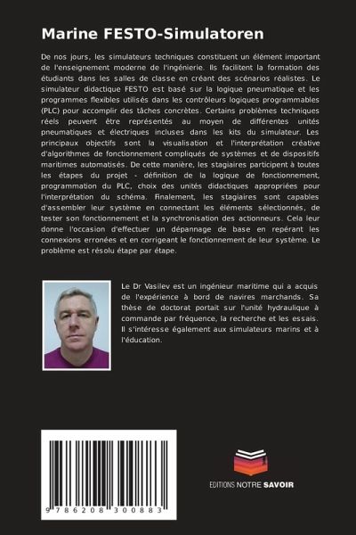 De nos jours, les simulateurs techniques constituent un élément important de l'enseignement moderne de l'ingénierie. Ils facilitent la formation des étudiants dans les salles de classe en créant des scénarios réalistes. Le simulateur didactique FESTO est basé sur la logique pneumatique et les programmes flexibles utilisés dans les contrôleurs logiques programmables (PLC) pour accomplir des tâches concrètes. Certains problèmes techniques réels peuvent être représentés au moyen de différentes unités pneumatiques et électriques incluses dans les kits du simulateur. Les principaux objectifs sont la visualisation et l'interprétation créative d'algorithmes de fonctionnement compliqués de systèmes et de dispositifs maritimes automatisés. De cette manière, les stagiaires participent à toutes les étapes du projet - définition de la logique de fonctionnement, programmation du PLC, choix des unités didactiques appropriées pour l'interprétation du schéma. Finalement, les stagiaires sont capables d'assembler leur système en connectant les éléments sélectionnés, de tester son fonctionnement et la synchronisation des actionneurs. Cela leur donne l'occasion d'effectuer un dépannage de base en repérant les connexions erronées et en corrigeant le fonctionnement de leur système. Le problème est résolu étape par étape.