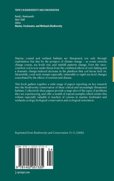 This book gathers together a wide range of papers reporting on key research into the biodiversity conservation of these critical and increasingly threatened habitats. Collectively these papers provide a snap-shot of the types of problems they are experiencing, and offer a wealth of topical examples which render this volume especially valuable to teachers of courses in marine, freshwater and wetlands ecology, biological conservation and ecological restoration.