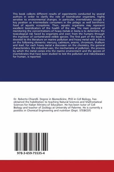This book collects different results of experiments conducted by several authors in order to clarify the role of bioindicator organisms, highly sensitive to environmental changes. In particular, invertebrates occupy a key position as intermediate consumers in the pelagic as well benthonic food of aquatic ecosystems. Then, aquatic organisms may represent excellent bioindicators of the health of the sea. The main purpose of monitoring the concentrations of heavy metals in biota is to determine the toxicological risk faced by organisms and even from the humans through the ingestion of contaminated edible species. The first part of the book is devoted to the literature on marine pollution and heavy metal with a focus on the following elements: mercury, cadmium, arsenic, chromium, thallium and lead. For each heavy metal a discussion on the chemistry, the general characteristics, the industrial uses, the mechanisms of pollution, the process by which the metal comes into the marine environment and the species of invertebrates that have been studied to test the pollution and risks/diseases for human, is reported.