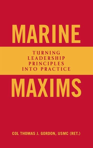 Marine Maxims is a collection of fifty principle-based leadership lessons that Thomas J. Gordon acquired commanding Marines over a career spanning three decades of service. Dealing with the complexities and challenges of the contemporary operating environment requires an internal moral compass fixed true. These maxims focus on developing inner citadels of character, moral courage, and the resilience to persevere in a contested domain where information is key. Its purpose is to provide future leaders with a professional development plan that will steel their resolve and enable them to lead with honor. Thematically, these maxims build upon a foundation of character, courage, and will. To be effective, a leader must model and inspire the will to persevere in the face of danger or adversity. The essence of effective leadership is credibility. A leader's credibility is derived from a congruence of competence and character. Exceptional leaders are not remembered for what they accomplished, but how they did it. Those that lead with integrity will be remembered as a leader worth following.