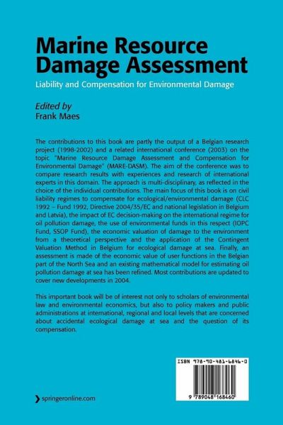 Prof. Dr. FRANK MAES Department of Public International Law & Maritime Institute Ghent University, Belgium Universiteitstraat 6, B - Ghent, Tel. : + 32 9 264 68 95, Fax: + 32 9 264 69 89 E-mail: Frank. Maes@UGent. be The contributions to this book are partly the output of a research project conducted between 1998 and 2002 in Belgium and a conference held at the Ghent University, Belgium, in June 2003 on the topic "Marine Resource Damage Assessment and Compensation for Environmental Damage" (MARE-DASM). The Belgian Federal Science Policy sponsored both the research and the conference. MARE-DASM…mehr