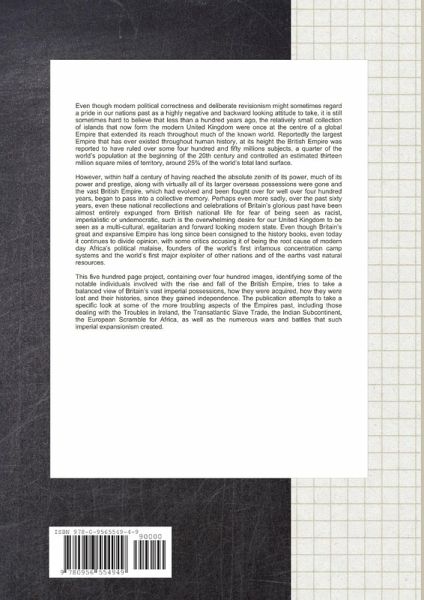Reportedly the largest Empire that has ever existed throughout human history, at its height the British Empire was reported to have ruled over some four hundred and fifty millions subjects, a quarter of the world's population at the beginning of the 20th century and controlled an estimated thirteen million square miles of territory, around 25%% of the world's total land surface. This five hundred page project, tries to take a balanced view of Britain's vast imperial possessions, how they were acquired, how they were lost and their histories, since they gained independence. The publication attempts to take a specific look at some of the more troubling aspects of the Empires past, including those dealing with the Troubles in Ireland, the Transatlantic Slave Trade, the Indian Subcontinent, the European Scramble for Africa, as well as the numerous wars and battles that such imperial expansionism created.