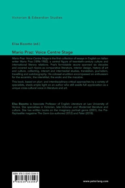 Mario Praz: Voice Centre Stage is the first collection of essays in English on Italian writer Mario Praz (1896-1982), a central figure of twentieth-century culture and international literary relations. Praz's formidable oeuvre spanned six decades and covered such topics as comparative literature, interior design, history of art and culture, collecting, interart and intermedial studies, translation, journalism, travelling and autobiography. His colossal erudition encompassed an enthusiasm for the eccentric, the interstitial, the erotic and the macabre.
