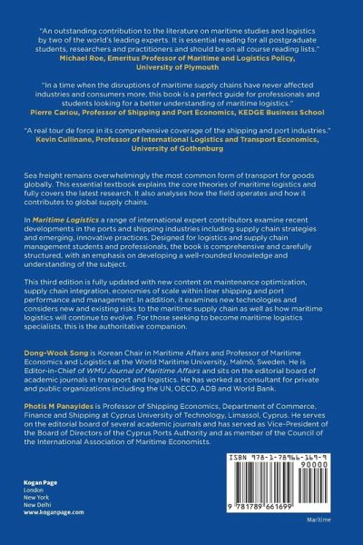 Maritime Logistics, now in its third edition, provides its readers with a comprehensive coverage of the maritime logistics industry. Well respected contributors from around the world provide detailed insights into key aspects of the industry and how it is evolving to meeting rapidly changing global conditions. I am sure this won't be the last edition as it remains to be seen how maritime logistics, and indeed the supply chains that rely on it, will transform themselves to achieve carbon neutrality by 2050. Indeed, the pace of change is now so rapid that readers are advised to digest this book before it is superseded by the fourth edition.