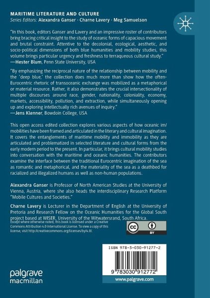 This open access edited collection explores various aspects of how oceanic im/ mobilities have been framed and articulated in the literary and cultural imagination. It covers the entanglements of maritime mobility and immobility as they are articulated and problematized in selected literature and cultural forms from the early modern period to the present. In particular, it brings cultural mobility studies into conversation with the maritime and oceanic humanities. The contributors examine the interface between the traditional Eurocentric imagination of the sea as romantic and metaphorical, and the materiality of the sea as a deathbed for racialized and illegalized humans as well as non-human populations