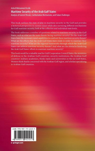 Maritime security of the Arabian Gulf countries: Concept and historical dimensions.- History of maritime security threats to the Arabian Gulf countries.- Mechanisms of the Arabian Gulf countries to safeguard maritime security.- Obstacles to achieving maritime security for the Arabian Gulf countries.