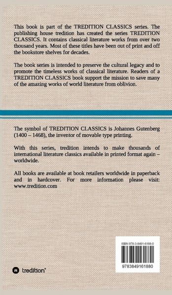 This book (hardcover) is part of the TREDITION CLASSICS. It contains classical literature works from over two thousand years. Most of these titles have been out of print and off the bookstore shelves for decades. The book series is intended to preserve the cultural legacy and to promote the timeless works of classical literature. Readers of a TREDITION CLASSICS book support the mission to save many of the amazing works of world literature from oblivion. With this series, tredition intends to make thousands of international literature classics available in printed format again worldwide.