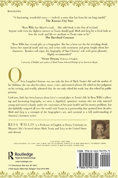 Olivia Langdon Clemens was not only the love of Mark Twain's life and the mother of his children, she was also his editor, muse, critic and trusted advisor. She read his letters and speeches. He relied on her judgment on his writing, and readily admitted that she not only edited his work, but also edited his public persona.Until now, little has been known about Livy's crucial place in Twain's life. In Resa Willis's affecting and fascinating biography, we meet a dignified, optimistic women who married young, raised three sons and a daughter, endured myriad health problems and money woes and who faithfully traipsed all over the world with Twain--Africa, Europe, Asia--while battling his moodiness and her frailty.Twain adored her. A hard-drinking dreamer with an insatiable wanderlust, he needed someone to tame him. It was Livy who encouraged him to finish his autobiography even through the last stages of her illness. When she died in 1904, Twain's zest for life and writing was gone. He died six years later. A triumph of the biographer's art, Mark and Livy presents the fullest picture yet of one of the most influential women in American letters.