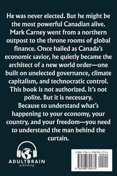 Mark Carney has been presented to the public as a savior-steady, smart, and principled. But beneath the polished media persona lies something more dangerous: a man who exemplifies the rise of post-democratic rule through unelected elites. This book tracks Carney's journey from Goldman Sachs to global central banking, from his UN climate roles to his high-powered ESG empire at Brookfield. Along the way, it exposes the mechanics of "stakeholder capitalism," the illusion of green finance, and the use of climate policy as a trojan horse for elite consolidation of power. It explores how financial mandates are being rewritten in real time, how climate activism is monetized by private equity, and how Carney has helped build a system that serves global capital at the expense of sovereign citizens. You'll learn about his connections to Trudeau's inner circle, the King's Privy Council, the World Economic Forum, and a future where democracy is replaced by governance-by-consensus-consensus defined by billionaires. This is a forensic account of how one man's career illustrates the quiet revolution redefining capitalism and democracy in the 21st century. From the so-called transition to net-zero to the manipulation of monetary policy, this exposé unearths the conflicts of interest, ideological agendas, and concentrated authority behind Carney's carefully managed image. If you thought Canada still belonged to its people, this book will make you think again.