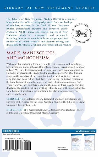 Mark, Manuscripts, and Monotheism is organized into three parts: Mark's Gospel, Manuscripts and Textual Criticism, and Monotheism and Early Jesus-Devotion. With contributors hailing from several different countries, and including both senior and junior scholars, this volume contains essays penned in honor of Larry W. Hurtado by engaging and focusing upon these three major emphases in his scholarship. The result is not only a fitting tribute to one of the most influential New Testament scholars of present times, but also a welcome survey of current scholarship.
