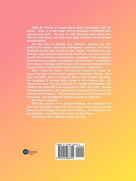 Allan Christopher is a self-made, African-American multimillionaire. Starting out with nothing but family, very high intelligence, ambition and drive, he succeeded against the odds. He dealt with racism, discrimination and the naysayers, Black and white, who were convinced he would never make it as an entrepreneur in the 1960s. Opening a fix-it shop in southside Chicago, through hard work and determination he turns it into a multi-million-dollar corporation. He's "made his mark." His home is a thirty-room estate. He is among the Who's Who of Black America. His company is listed in the Fortune 500. He is a "mover and shaker" in the community, and all the connections that accompany it. He faithfully attends church on Sundays. But has he made it? With the advent of his sixtieth birthday, his character, his past and his beliefs come into focus, honor and question as his story is told through the eyes of his family, and with it his impact on their lives. The time is 1988; the place, Chicago.