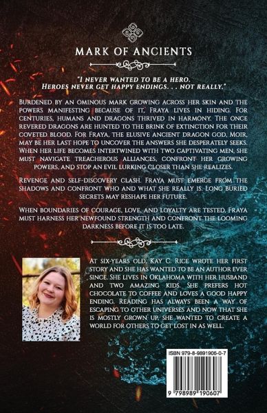"I never wanted to be a hero. Heroes never get happy endings . . . not really." Burdened by an ominous mark growing across her skin and the powers manifesting because of it, Fraya lives in hiding. For centuries, humans and dragons thrived in harmony. The once revered dragons are hunted to the brink of extinction for their coveted blood. For Fraya, the elusive ancient dragon god, Moir, may be her last hope to uncover the answers she desperately seeks. When her life becomes intertwined with two captivating men, she must navigate treacherous alliances, confront her growing powers, and stop an evil lurking closer than she realizes. Revenge and self-discovery clash. Fraya must emerge from the shadows and confront who and what she really is. Long buried secrets may reshape her future. When boundaries of courage, love, and loyalty are tested, Fraya must harness her newfound strength and confront the looming darkness before it is too late.