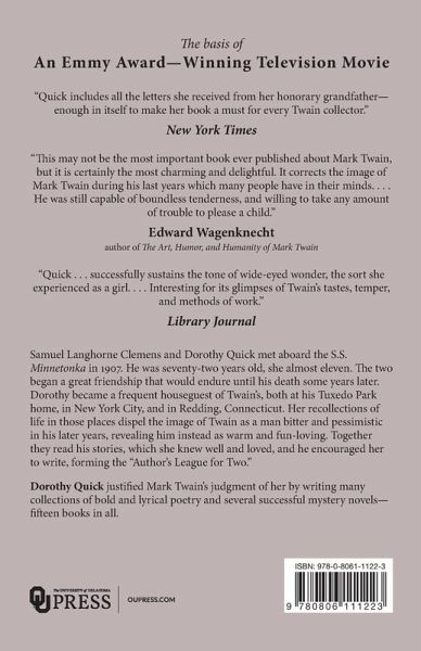 Samuel Langhorne Clemens and Dorothy Quick met aboard the S. S. Minnetonka in 1907. He was seventy-two years old, she almost eleven. The two began a great friendship that would endure until his death some years later. Dorothy became a frequent houseguest of Twain's, both at his Tuxedo Park home, in New York City, and in Redding Connecticut. Her recollections of life in those places dispel the image of Twain as a man bitter and pessimistic in his later years, revealing him instead as warm and fun-loving. Together they read his stories, which she knew well and loved, and he encouraged her to write, forming the ""Author's League for Two.