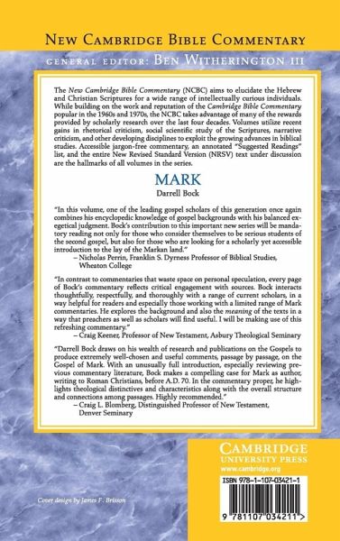 This volume provides a comprehensive, accessible introduction to the Gospel of Mark, now widely considered the first recorded treatment of Jesus. Darrell Bock explains how this text, once the least-used gospel, came to be regarded as the starting point for understanding Jesus. Drawing together previous arguments and discussion in a constructive summary, he traces the significance of Mark and addresses key features such as its cultural and historical background, its narrative flow, and the role of Greek in supplying meaning. This commentary highlights the issues Mark's gospel raises and develops Mark's message surrounding Jesus' claims of kingdom authority and salvation, the call to disciples to follow him, and the preparation of those disciples to face suffering in light of their choice. Mark will be a valuable resource for students, teachers, and pastors alike.