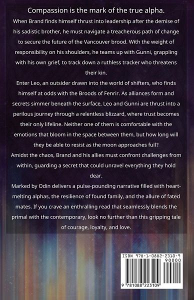 Some scars are more than skin deep. After killing his sadistic brother, Brand inherits the responsibility for his brother's brood. Now, he must convince the brood that their barbaric way of life belongs in the past and demand change in order to secure their future. Crushed by the death of his mate, Gunni believes it's only a matter of time before he succumbs to the loneliness that plagues his life. He follows Brand out of loyalty, but he secretly craves the peace that death will bring-until he is confronted with the most infuriating human he's ever met. Leo is a throwback who has never quite fit in with human society. Drawn into the savage world of the werewolves, not entirely against his will, he discovers that the Broods of Fenrir don't fear much... except him. These three conflicting personalities unite in pursuit of an unscrupulous trapper who has taken a member of Brand's brood captive. They must track him down before he uncovers what they are and their secret is revealed.