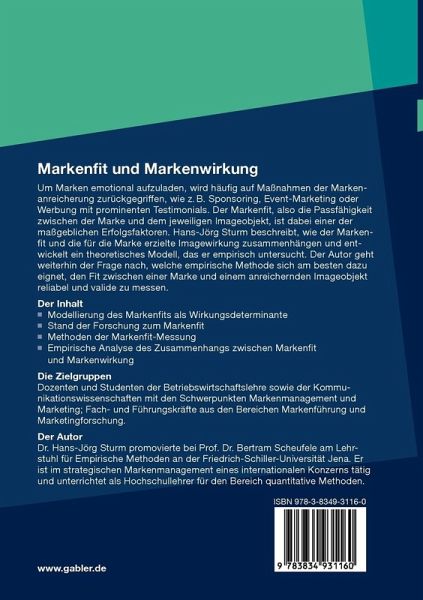 Um Marken emotional aufzuladen, wird häufig auf Maßnahmen der Markenanreicherung zurückgegriffen, wie z.B. Sponsoring, Event-Marketing oder Werbung mit prominenten Testimonials. Der Markenfit, also die Passfähigkeit zwischen der Marke und dem jeweiligen Imageobjekt, ist dabei einer der maßgeblichen Erfolgsfaktoren. Hans-Jörg Sturm beschreibt, wie der Markenfit und die für die Marke erzielte Imagewirkung zusammenhängen und entwickelt ein theoretisches Modell, das er empirisch untersucht. Der Autor geht weiterhin der Frage nach, welche empirische Methode sich am besten dazu eignet, den Fit zwischen einer Marke und einem anreichernden Imageobjekt reliabel und valide zu messen.