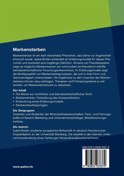 "[Breiters] Erklärungsmodell zeigt die Multikausalität von Markensterbeprozessen, die sich in ihrer Form und Geschwindigkeit unterscheiden. Damit ist das Buch auch für Firmenlenker interessant, die - aufbauend auf ihrem Wissen über Gründe für Markensterben - Therapien und Frühwarnsysteme entwickeln können, um Markenwertverluste in ihrem Betrieb zu reduzieren." Markenartikel, 3-2012