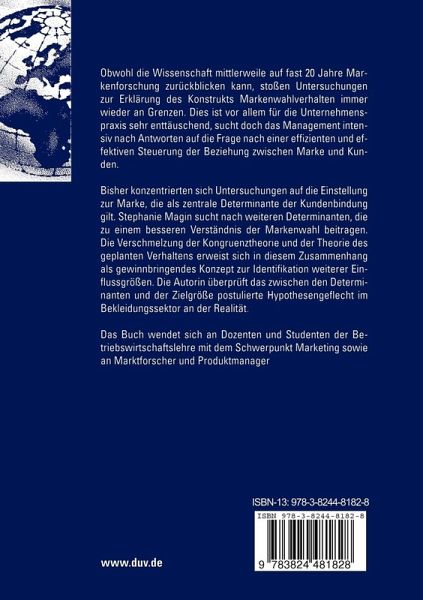 Bisher konzentrierten sich Untersuchungen auf die Einstellung zur Marke, die als zentrale Determinante der Kundenbindung gilt. Stephanie Magin sucht nach weiteren Determinanten, die zu einem besseren Verständnis der Markenwahl beitragen. Die Verschmelzung der Kongruenztheorie und der Theorie des geplanten Verhaltens erweist sich in diesem Zusammenhang als gewinnbringendes Konzept zur Identifikation weiterer Einflussgrößen. Die Autorin überprüft das zwischen den Determinanten und der Zielgröße postulierte Hypothesengeflecht im Bekleidungssektor an der Realität.