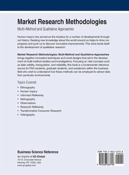 Human inquiry has served as the impetus for a number of developments throughout history. Seeking new knowledge about the world around us helps to drive our progress and push us to discover innovative improvements. This drive lends itself to the development of qualitative research. Market Research Methodologies: Multi-Method and Qualitative Approaches brings together innovative techniques and novel designs that aid in the development of multi-method studies and investigations. Focusing on vital concepts such as data validity, triangulation, and reliability, this book is a fundamental reference source for PhD students, graduate students, and academics within the business field who wish to understand how these methods can be employed to extract data from particular environments.