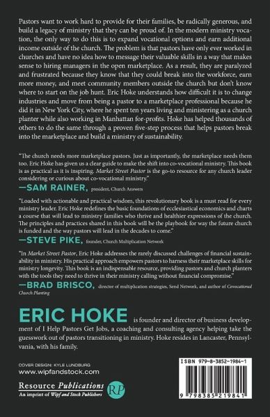 Pastors want to work hard to provide for their families, be radically generous, and build a legacy of ministry that they can be proud of. In the modern ministry vocation, the only way to do this is to expand vocational options and earn additional income outside of the church. The problem is that pastors have only ever worked in churches and have no idea how to message their valuable skills in a way that makes sense to hiring managers in the open marketplace. As a result, they are paralyzed and frustrated because they know that they could break into the workforce, earn more money, and meet community members outside the church but don't know where to start on the job hunt. Eric Hoke understands how difficult it is to change industries and move from being a pastor to a marketplace professional because he did it in New York City, where he spent ten years living and ministering as a church planter while also working in Manhattan for-profits. Hoke has helped thousands of others to do the same through a proven five-step process that helps pastors break into the marketplace and build a ministry of sustainability.