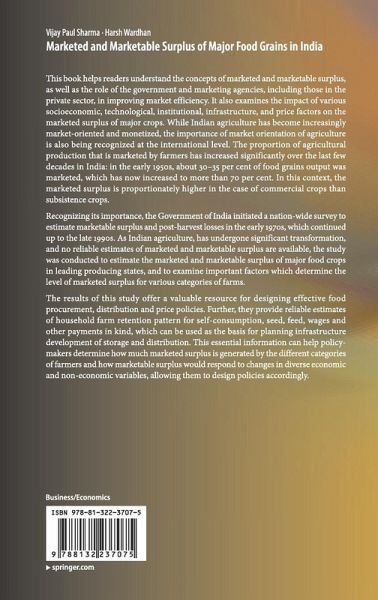 This book helps readers understand the concepts of marketed and marketable surplus, as well as the role of the government and marketing agencies, including those in the private sector, in improving market efficiency. It also examines the impact of various socioeconomic, technological, institutional, infrastructure, and price factors on the marketed surplus of major crops. While Indian agriculture has become increasingly market-oriented and monetized, the importance of market orientation of agriculture is also being recognized at the international level. The proportion of agricultural production that is marketed by farmers has increased significantly over the last few decades in India: in the early 1950s, about 30-35 per cent of food grains output was marketed, which has now increased to more than 70 per cent. In this context, the marketed surplus is proportionately higher in the case of commercial crops than subsistence crops.