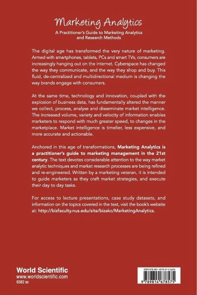 The digital age has transformed the very nature of marketing. Armed with smartphones, tablets, PCs and smart TVs, consumers are increasingly hanging out on the internet. Cyberspace has changed the way they communicate, and the way they shop and buy. This fluid, de-centralized and multidirectional medium is changing the way brands engage with consumers. At the same time, technology and innovation, coupled with the explosion of business data, has fundamentally altered the manner we collect, process, analyse and disseminate market intelligence. The increased volume, variety and velocity of information enables marketers to respond with much greater speed, to changes in the marketplace. Market intelligence is timelier, less expensive, and more accurate and actionable. Anchored in this age of transformations, Marketing Analytics is a practitioner's guide to marketing management in the 21st century. The text devotes considerable attention to the way market analytic techniques and market research processes are being refined and re-engineered. Written by a marketing veteran, it is intended to guide marketers as they craft market strategies, and execute their day to day tasks.