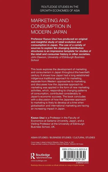 This book explores the development of marketing, consumption and marketing thought in Japan during the twentieth century. It shows how Japan had a long established indigenous traditional approach to marketing, separate from Western approaches, and discusses how the Japanese approach to marketing was applied in the form of new marketing activities, responding to changing patterns of consumption, which contributed considerably to Japan's economic success. The book concludes with a discussion of how Japanese approach to marketing is likely to develop at a time when globalisation and international marketing are having an increasing impact in Japan.