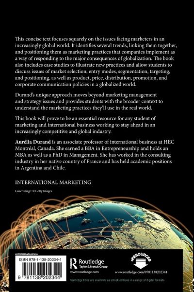 This concise text focuses squarely on the issues facing marketers in an increasingly global world. It identifies several trends, linking them together, and positioning them as marketing practices that companies implement as a way of responding to the major consequences of globalization. The book also includes case studies to illustrate new practices and allow students to discuss issues of market selection, entry modes, segmentation, targeting, and positioning, as well as product, price, distribution, promotion, and corporate communication policies in a globalized world. Durand's unique approach moves beyond marketing management and strategy issues and provides students with the broader context to understand the marketing practices they'll use in the real world. This book will prove to be an essential resource for any student of marketing and international business working to stay ahead in an increasingly competitive and global industry.
