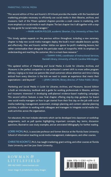 This updated new edition is a much- needed guide to marketing for libraries, archives, and museum professionals in the social media age. It is both an introductory textbook and a guide for working professionals who want to go beyond mere promotion to developing and deliberately managing a comprehensive marketing campaign.