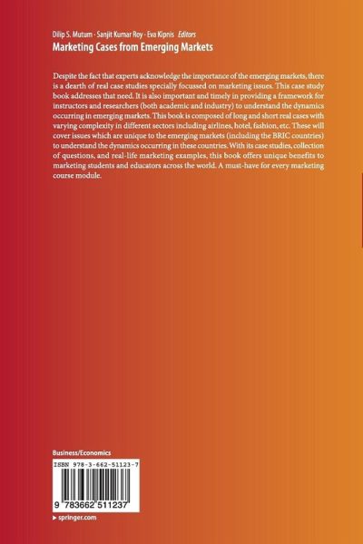 Despite the fact that experts acknowledge the importance of the emerging markets, there is a dearth of real case studies specially focussed on marketing issues. This case study book addresses that need. It is also important and timely in providing a framework for instructors and researchers (both academic and industry) to understand the dynamics occurring in emerging markets. This book is composed of long and short real cases with varying complexity in different sectors including airlines, hotel, fashion, etc. These will cover issues which are unique to the emerging markets (including the BRIC countries) to understand the dynamics occurring in these countries. With its case studies, collection of questions, and real-life marketing examples, this book offers unique benefits to marketing students and educators across the world. A must-have for every marketing course module.