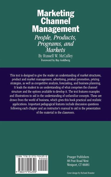 This text is designed to give the reader an understanding of market structures, product and market management, advertising, product promotion, pricing strategies, as well as competitive analysis, forecasting, and business planning. It leads the student to an understanding of what comprises the channel structure and the options available to develop it. The text features examples and illustrations to aid in the understanding of unfamiliar concepts. These are drawn from the world of business which gives this book practical and realistic applications. Important pedagogical features include discussion questions following each chapter and an instructor's manual to aid in the presentation of the material in the classroom (see the Instructor's Manual at http://www.greenwood.com/mccalley).