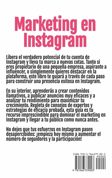 Marketing en Instagram ¿Te resulta difícil aumentar tus seguidores en Instagram, ya sea para tu negocio, marca personal o simplemente por diversión? Si es así, este libro es exactamente lo que necesitas para transformar tu estrategia de Instagram y tener un impacto real en la mayor plataforma de intercambio de fotos del mundo. Esta completa guía abarca todo lo que necesitas saber para crear una sólida presencia en Instagram y aprovechar sus funciones para promocionar tu marca con eficacia. Descubrirás cómo crear contenido visualmente cautivador y atractivo que haga que tu audiencia vuelva a por más, cómo publicar anuncios segmentados que lleguen a tus seguidores ideales y cómo dominar el uso de las analíticas de Instagram para medir tu crecimiento y optimizar tu estrategia. Repleto de ideas de expertos y años de experiencia probada, este libro desglosa cada paso de una manera clara y práctica, por lo que es un recurso imprescindible si usted es dueño de una pequeña empresa, influenciador de medios sociales, o alguien que busca elevar su marca personal. Encontrarás consejos prácticos, estrategias y recomendaciones del mundo real que te diferenciarán de la competencia y convertirán tu Instagram en una poderosa herramienta de marketing. No te conformes con la mediocridad en Instagram: invierte en tu éxito hoy mismo. ¡Hazte con tu copia y empieza a conseguir los resultados que siempre has deseado en tu cuenta!