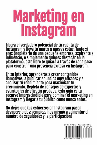 Marketing en Instagram ¿Te resulta difícil aumentar tus seguidores en Instagram, ya sea para tu negocio, marca personal o simplemente por diversión? Si es así, este libro es exactamente lo que necesitas para transformar tu estrategia de Instagram y tener un impacto real en la mayor plataforma de intercambio de fotos del mundo. Esta completa guía abarca todo lo que necesitas saber para crear una sólida presencia en Instagram y aprovechar sus funciones para promocionar tu marca con eficacia. Descubrirás cómo crear contenido visualmente cautivador y atractivo que haga que tu audiencia vuelva a por más, cómo publicar anuncios segmentados que lleguen a tus seguidores ideales y cómo dominar el uso de las analíticas de Instagram para medir tu crecimiento y optimizar tu estrategia. Repleto de ideas de expertos y años de experiencia probada, este libro desglosa cada paso de una manera clara y práctica, por lo que es un recurso imprescindible si usted es dueño de una pequeña empresa, influenciador de medios sociales, o alguien que busca elevar su marca personal. Encontrarás consejos prácticos, estrategias y recomendaciones del mundo real que te diferenciarán de la competencia y convertirán tu Instagram en una poderosa herramienta de marketing. No te conformes con la mediocridad en Instagram: invierte en tu éxito hoy mismo. ¡Hazte con tu copia y empieza a conseguir los resultados que siempre has deseado en tu cuenta!