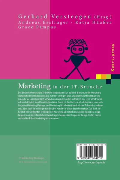 1 Einführung in das Marketing.- 1.1 Grundlagen zum Marketing in der IT-Branche.- 1.2 Begriffsklärungen.- 1.3 Unterschiede im Produkt- und Dienstleistungsgeschäft aus Sicht des Marketings.- 1.4 Fazit.- 2 Marketingstrategien und Marketinginstrumente in der IT-Branche.- 2.1 Einführung.- 2.2 Leadsgenerierung.- 2.3 Awareness Marketing.- 2.4 Guerilla-Marketing.- 2.5 Mischung der Strategien.- 2.6 Analyseinstrumente im Marketing.- 2.7 Fazit.- 3 Marketingkommunikation und Corporate Identity.- 3.1 Einführung.- 3.2 Marketing und Marketingkommunikation.- 3.3 Zielgruppen, Ziele und Instrumente der Marketingkommunikation.- 3.4 Corporate Identity und Marketingkommunikation.- 3.5 Das Wesen der Corporate Identity.- 3.6 Bestandteile der Corporate Identity.- 3.7 Entwicklung der Corporate Identity.- 3.8 Fazit.- 4 Aufbau des Marketings in der IT-Branche.- 4.1 Einführung.- 4.2 Die unterschiedlichen Rollen im Marketing.- 4.3 Möglicher Aufbau einer Organistionsstruktur im Marketing.- 4.4 Aufhängung von Vertrieb und Marketing innerhalb der Organisationsstruktur.- 4.5 Personalführung im Bereich Marketing.- 4.6 Fazit.- 5 Pressearbeit.- 5.1 Einführung in die Pressearbeit.- 5.2 Inhalte der Pressearbeit.- 5.3 Instrumente der Pressearbeit.- 5.4 Pressearbeit unter Zuhilfenahme einer Presseagentur.- 5.5 Die häufigsten Fehler in der Pressearbeit.- 5.6 Zusammenfassung.- 6 Weitere Agenturen im Umfeld des Marketings in der IT-Branche.- 6.1 Einführung.- 6.2 Eventagenturen.- 6.3 Call-Center.- 6.4 Webagenturen.- 6.5 Mediaagenturen.- 6.6 Grafikagenturen.- 6.7 Zusammenfassung.- 7 Eventmarketing.- 7.1 Einführung in die Thematik.- 7.2 Das Eventbuch.- 7.3 Die unterschiedlichen Events in der IT-Branche.- 7.4 Eventplanung und Eventbewerbung allgemein.- 7.5 Entwicklungstendenzen.- 7.6 Fazit.- 8Partnermanagement.- 8.1 Einführung.- 8.2 Aufbau eines Partnerkonzeptes.- 8.3 Das Leben der Partnerschaften.- 8.4 Distributoren und VARs.- 8.5 Verantwortlichkeiten im Partnermanagement.- 8.6 Gefahren von Partnerschaften.- 8.7 Fazit.- 9 Das Marketingbudget.- 9.1 Einführung in die Thematik.- 9.2 Die Planung des Marketing Budgets.- 9.3 Das Führen des Marketingbudget.- 9.4 Wenn sich das Marketingbudget ändert.- 9.5 Fazit.- Anhang A: Verzeichnis der wichtigsten Magazine in der IT-Branche.- Anhang B: Die wichtigsten Instrumente im Marketing.- Die Autoren.- Literatur.- Abkürzungsverzeichnis.- Abbildungsverzeichnis.
