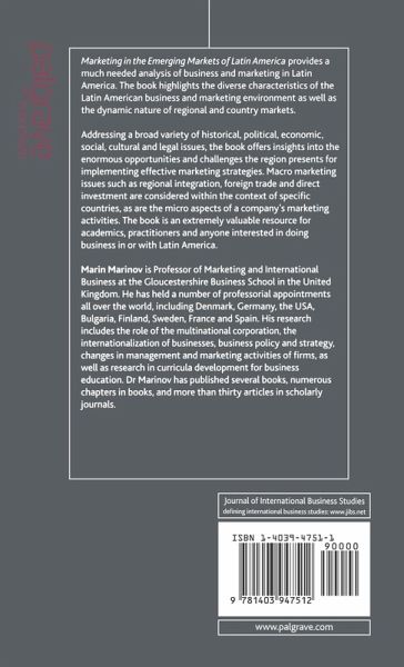 Marketing in the Emerging Markets of Latin America provides a much needed analysis of business and marketing in Latin America. The book highlights the diverse characteristics of the Latin American business and marketing environment and the dynamic nature of regional and country markets. Addressing a broad variety of historical, political, economic, social, cultural and legal issues, the book offers unique insights into the enormous opportunities and challenges the region presents for implementing effective marketing strategies. The book is an extremely valuable resource for academics, practitioners and anyone interested in doing business in or with Latin America.
