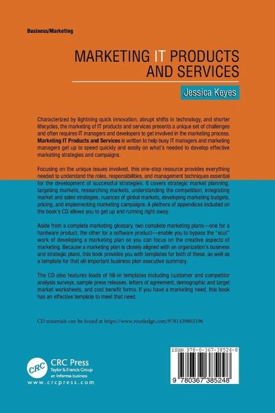 Helping IT managers and marketing managers get up to speed, quickly and easily, on what¿s needed to develop effective marketing campaigns, Marketing IT Products and Services focuses on the unique issues involved in the marketing of IT products and services. This one-stop resource provides everything needed to understand the role