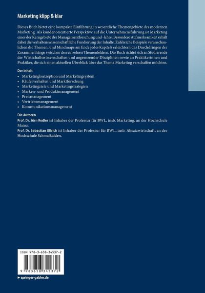 Dieses Buch bietet eine kompakte Einführung in wesentliche Themengebiete des modernen Marketing. Als kundenorientierte Perspektive auf die Unternehmensführung ist Marketing eines der Kerngebiete der Managementforschung und -lehre. Besondere Aufmerksamkeit erhält dabei die verhaltenswissenschaftliche Fundierung der Inhalte. Zahlreiche Beispiele veranschaulichen die Themen, und Mindmaps am Ende jedes Kapitels erleichtern das Durchdringen der Zusammenhänge zwischen den einzelnen Themenfeldern.