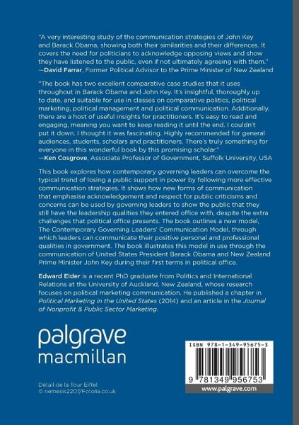 This book explores how contemporary governing leaders can overcome the typical trend of losing a public support in power by following more effective communication strategies. It shows how new forms of communication that emphasise acknowledgement and respect for public criticisms and concerns can be used by governing leaders to show the public that they still have the leadership qualities they entered office with, despite the extra challenges that political office presents. The book outlines a new model, The Contemporary Governing Leaders' Communication Model, through which leaders can communicate their positive personal and professional qualities in government. The book illustrates this model in use through the communication of United States President Barack Obama and New Zealand Prime Minister John Key during their first terms in political office.