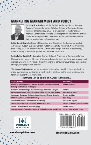 Strategic Marketing Decisions for a Changing Business Landscape! Marketing Management and Policy by Naresh Malhotra provides a comprehensive exploration of marketing strategies, policies, and frameworks that drive business success. This volume in the Legend in Marketing series delves into the fundamental principles of marketing management, addressing critical topics such as market positioning, competitive strategy, pricing models, and branding policies. With insights drawn from decades of research, this book examines how businesses formulate and implement effective marketing policies to stay ahead in dynamic markets. It also covers regulatory considerations, ethical marketing practices, and the evolving role of technology in shaping marketing decisions. This essential resource is designed for marketing professionals, business strategists, policymakers, and researchers looking to refine their marketing approaches and create sustainable growth strategies. Master the art of marketing management-get your copy today!
